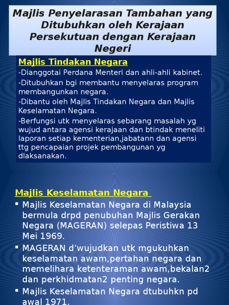 Majlis Penyelarasan Tambahan Yang Ditubuhkan Oleh Kerajaan Persekutuan Pdf